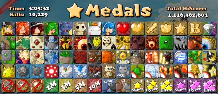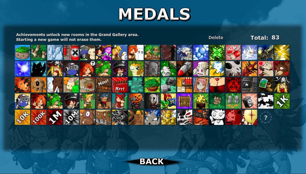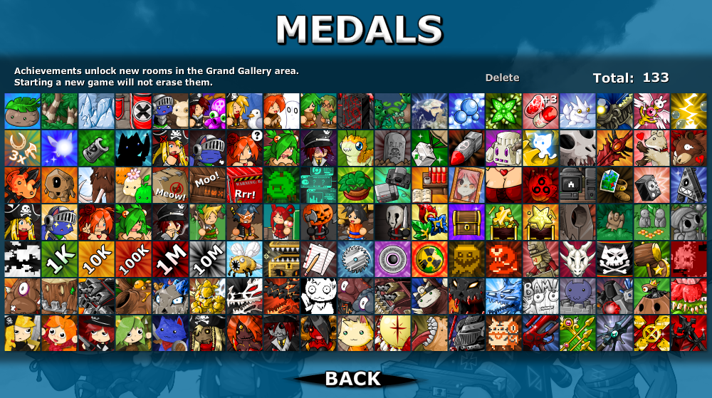 In Cat Cafe (both original and Epic Battle Fantasy Collection version), there are 16 types of unlockable medals, which give out Gold as a reward. Some medals have levels where more Gold is earned for recompleting the harder tasks (there are a total of 39 medals if the levels are considered).