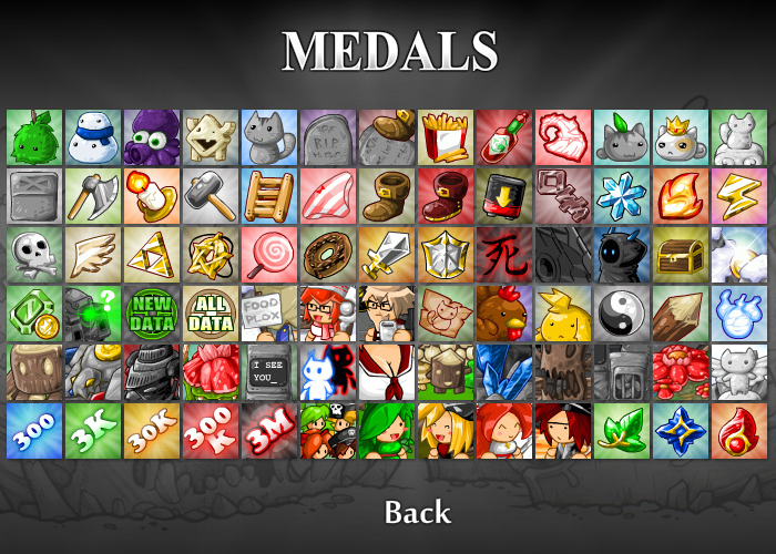 There are 27 Medals in Epic Battle Fantasy 2, with 7 of them being exclusive to the EBF Collection release of the game. They serve no in-game purpose, acting as a way of acknowledging the player's feats.